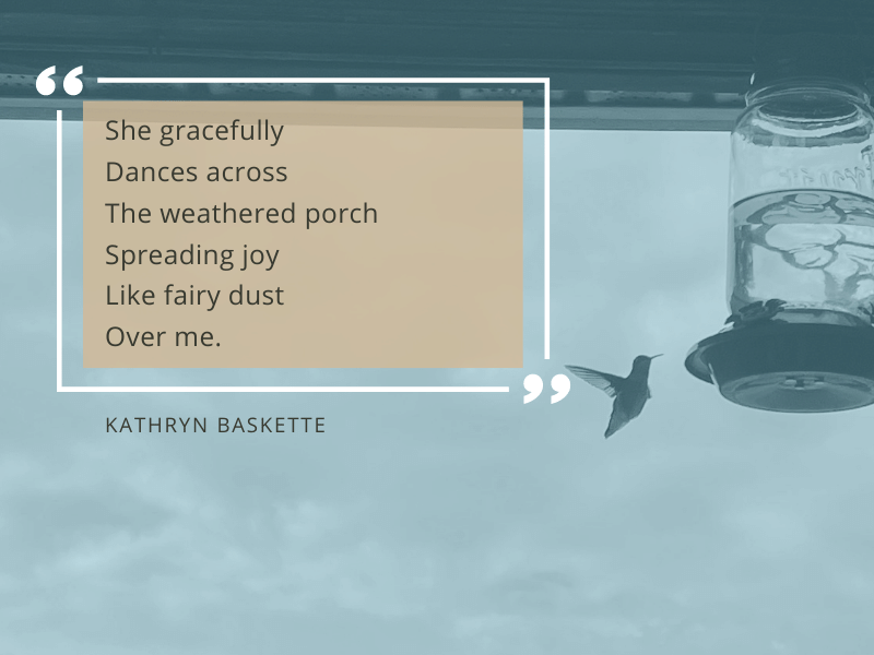 Hummingbirds are so beautiful and graceful. It’s my favorite past time while sipping on my morning coffee. The photo was taken one morning when my little friend came by and decided to get close to me while eating her breakfast. She was flying around me and taking her time eating. It also inspired the poem. Thank you for reading!
